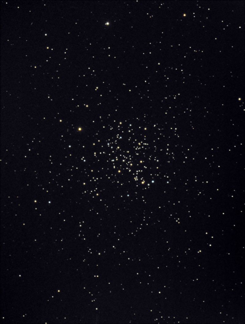Das heißt für die Sterne von M67, die einst miteinander zusammen aus einer Gaswolke entstanden sind, dass sie zusammen bleiben konnten und nicht auseinander gerissen wurden. Das Alter von M67 wird etwa auf 4 Milliarden Jahre geschätzt, was für einen Offenen Sternhaufen <sehr alt> meint. Auch unsere Sonne ist in dieser Zeit mit anderen Sternen entstanden, doch hat sich "unser" Sternhaufen im Gewirr der galaktischen Scheibe verlaufen und aufgelöst. NGC 188, der ganz in der Nähe des Polarsterns steht, ist einer der wenigen Offenen Sternhaufen, der noch älter eingestuft wird.