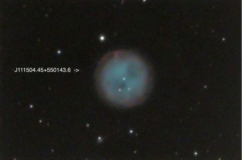 Dabei verwies er auf den Quasar neben M97, der mir bislang unbekannt geblieben war von seinen Entfernungsdaten her. Auf einem meiner Bilder von M97 war er leicht zu finden gewesen. Mit einer Helligkeit von 19 mag liegt er ohne weiteres im Bereich von kurzbelichteten Aufnahmen.