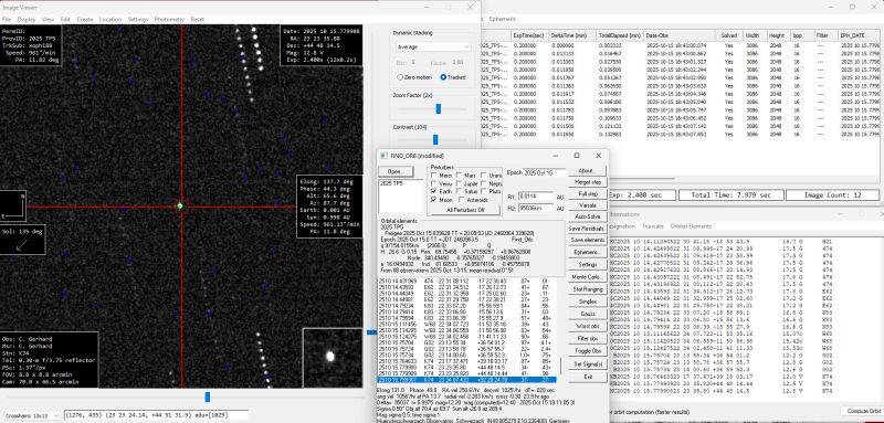 Am Abend des 15.10.2025 wurde der neu entdeckte Asteroid mit der Bezeichnung 2025 TP5 beobachtet. Schon bei der Aufnahmeserie fiel er durch seine hohe Geschwindigkeit am Himmel auf: er durchquerte den scheinbaren Monddurchmesser innerhalb zwei Minuten!