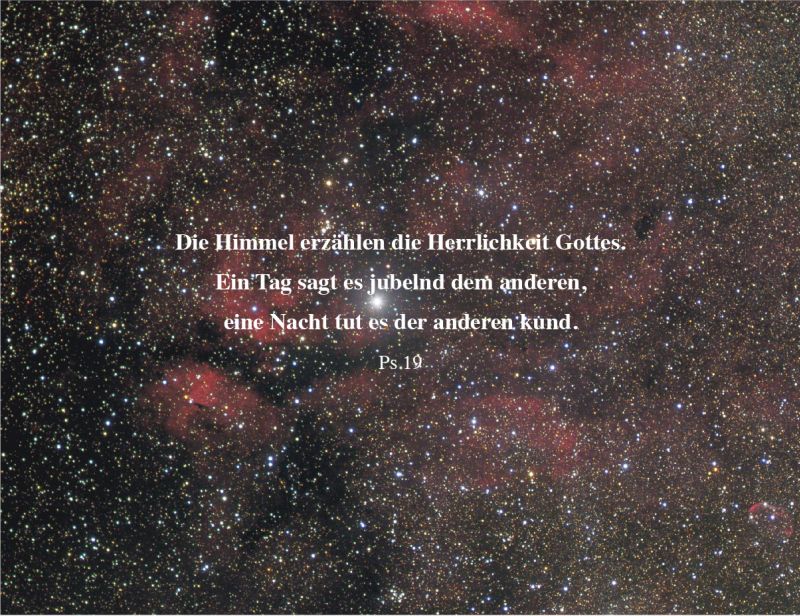 In unserem Gästehaus finden Sie bis Ende März Bilder von unserem Mond bis hin zum Perseusgalaxienhaufen. Der Zugang ist tagsüber bei der Klosterpforte. Der Ausstellung von 16 Bildern des Sternenhimmels habe ich ein Zitat aus dem 19. Psalm vorangestellt. Die „Herrlichkeit Gottes“, die „Kabod des HERRN“, wird an vielen Stellen der Bibel besungen, am meisten in den Psalmen. Das hebräische Wort „Kabod“ wird mit Herrlichkeit übersetzt, meint aber auch „die Schwere, das Gewicht, die Schönheit, das Erschreckende, das Faszinierende“. Ein Theologe unserer Tage übersetzt „Kabod“ mit „ganz – schön – schwer“.