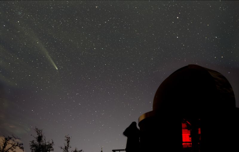 Ein Übersichtsbild mit der Sternwarte wurde mit einem 50 mm Objektiv und einer digitalen Spiegelreflexkamera gewonnen. Dabei wurden 50 x 10 Sekunden Aufnahmen des Kometen aufsummiert und mit einem "Standbild" der Sternwarte kombiniert.