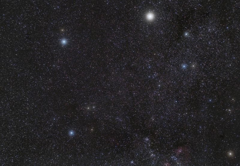 Das Foto des Sternbildes umfasst leider nicht den interessanten Südteil mit einigen Sternhaufen und Nebel. Aber das meiste vom Sternbild ist drauf. Die Brennweite des verwendeten Objektivs war etwas zu groß!