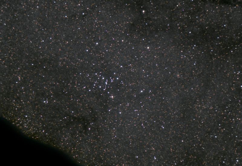 Das Bild entstand nachdem Messier 7 zuvor von einem Berggipfel verdeckt worden war. Immerhin kamen noch 15 Minuten an Belichtungszeit zusammen. Dank der klaren Luft wird die Milchstraße in ihrer Struktur gut sichtbar.