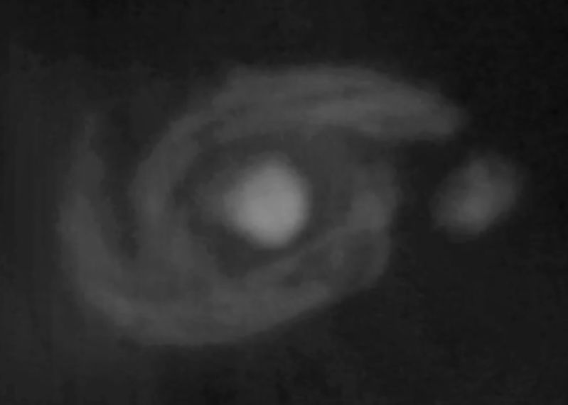 - Sternströme umgeben beide Galaxien und lassen mehrere Begegnungen vermuten