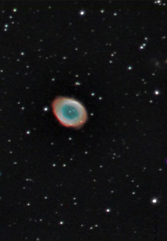 erkundete ich am 23.8.2008. Bei leider mäßigen Seeing versuchte ich an die Grenzen des C8 bei einer Brennweite von 2030 mm und der GPDX-Montierung zu gehen. Eine Auflösung von 3" (FWHM) war nicht ganz das, was ich mir erhofft hatte. Dennoch gehört die Aufnahme zu den "schärfsten", die mir bislang gelungen sind. Nachteilig wirkte sich bei der Vorbereitung der Aufnahme schon die Aufnahme einer PEC-Tabelle auf für den Ausgleich des periodischen Schneckenspiels der Montierung. Der Probestern Beta Aql tanzte zum Teil doch etwas heftig umher. Später wurde das Seeing zwar besser, aber nicht gerade ruhig.