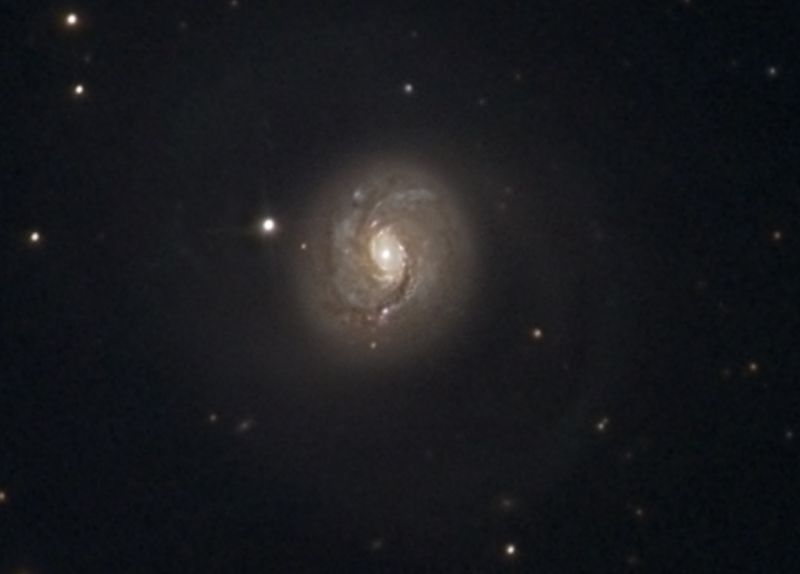 gelang mir Mitte Januar 2012. Dabei zählt die Galaxie M77 zu unserer Nachbarschaft mit 50 Millionen Lichtjahren Entfernung. Die entferntesten Objekte im Bild liegen über 200-mal weiter von uns weg bei über 11.000 Millionen Lichtjahren - fast schon am Rande des sichtbaren Universums. Die Galaxie M77 zählt unter den Spiralgalaxien zu der an Masse reichsten Systemen. Über eine Billion Sonnenmassen traut man ihr zu. In ihrem Zentrum soll ein Super-massives Schwarzes Loch von einigen hundert Millionen Sonnenmassen existieren und sich durch entsprechende Strahlung beobachten lassen. Doch das liegt außerhalb meiner Möglichkeiten. Auf dem Bild finden sich nicht nur der Kern und die Spiralstruktur, sondern auch alle "Einzelteile" einer Galaxie: Riesige Offene Sternhaufen bzw. Sternentstehungsgebiete, Wasserstoffwolken, Kugelsternhaufen und ein weiter Halo um die Galaxie.