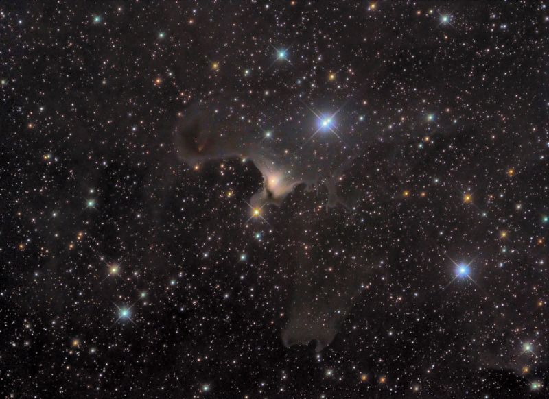 vdB 141 wird sehr stark von Staub dominiert, der eine rötlich-bräunliche oder auch grünliche Färbung annehmen kann. Es ist aber auch das gebliche Licht der Hintergrundsterne, das durch ihn hindurch sichtbar wird. Darüber hinaus lassen die Formen der Gaswolken der Imagination freien Lauf. Jedem Betrachter bleibt es überlassen, welche Dinge, Finger oder Gestalten er in dem Bild erkennen kann.