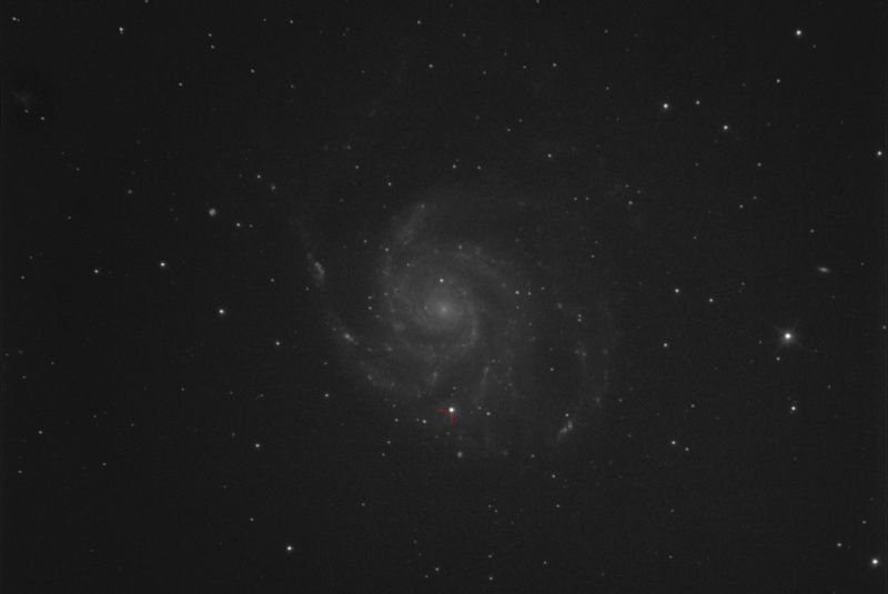 Das Bild möchte ich + Prof. Ernst Schöberl widmen, der mir großzügigerweise das Teleskop überließ, mit dem ich die Galaxie aufnehmen konnte. Bis kurz vor seinem Tod war er noch rege an den Erscheinungen des Himmels interessiert und die Supernova in M101 hätte ihn sicher sehr interessiert.