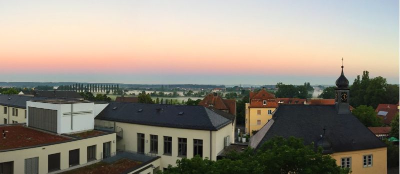 Am Morgen des 23.6.2016 gesellte sich noch ein malerischer Nebel über dem Main und den Mainwiesen hinzu der dem frühen Morgen eine besondere, irdische Note hinzufügte. Das Morgengebet von uns Mönchen passt in diesen Rhythmus der Natur, ein Einschwingen in den Kosmos und seinem Zeitlauf.