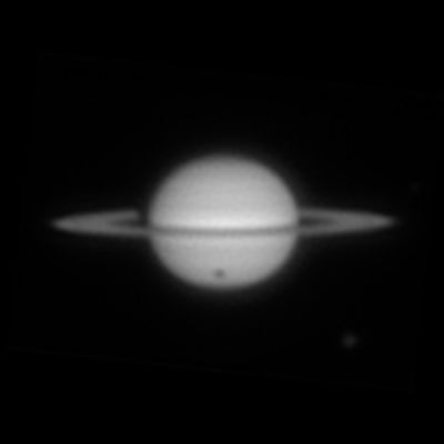 In der Negativdarstellung kommt auch noch der Mond Dione zum Vorschein: