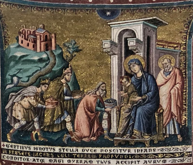 Der neue Stern, der auch am oberen Bildrand in der Mitte über dem Jesuskind zu sehen ist, ist der wahre "Star" in der Geschichte der Matthäus. Um ihn geht es: Jesus Christus ist das Wort Gottes, der Dreh- und Angelpunkt der ganzen Geschichte.