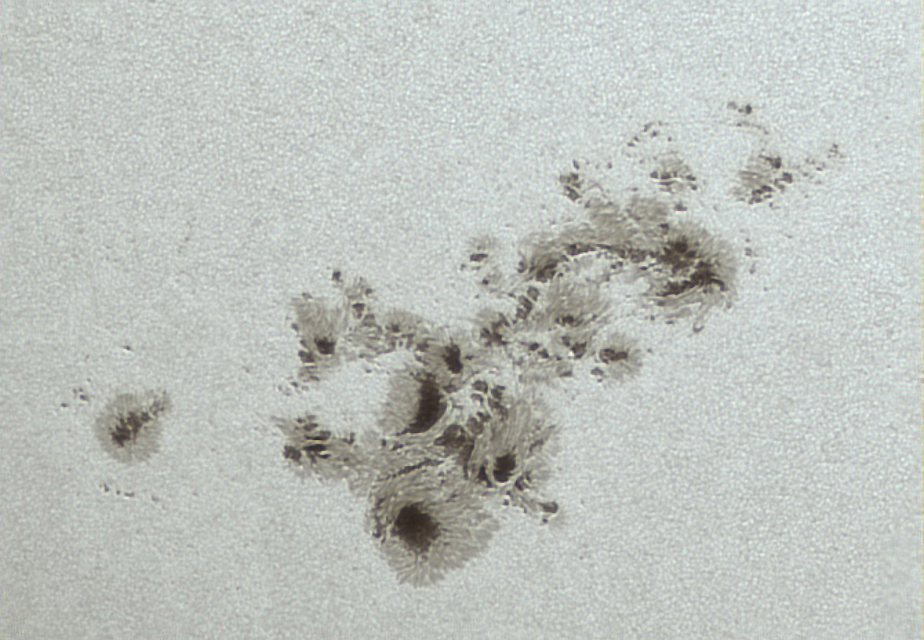 Die untenstehende Bildergalerie wird sukzessive erweitert. Zu sehen sind gerade Bilder vom 9. und 10. Mai. Einmal ist die Sonnenfleckengruppe im visuellen "Weißlicht" zu sehen, dann im Licht des Wasserstoffs.