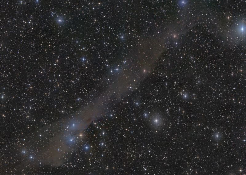 Etwas heller am Himmel als der "Loch Ness" Dunkelnebel erscheint die Gas- und Staubwolke vdB158. Die Katalogbezeichnung geht auf den kanadischen Astronomen Sidney van den Bergh zurück, der 1966 erstmals einen Katalog mit hellen Reflexionsnebeln veröffentlichte.