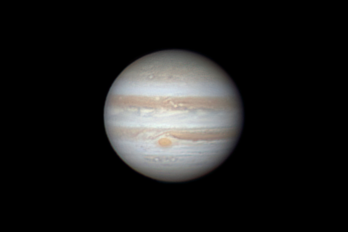 Die Bilder in den Details zu beschreiben, würde einen Eintrag hier sprengen. Nur auf die großen Details einzugehen: die beiden Äquatorbänder zeigen viele Verwirbelungen und die Dynamik der Atmosphäre des Planetenriesen. Der Große Rote Fleck zeigt sich auf einer Ansicht des Planeten, der mit 9 Stunden und 55 Minuten sehr schnell rotiert. Daher rührt auch die Abplattung des Planeten aufgrund der Kräfte, die durch die schnelle Rotation wirken. Am Äquator würde man sich auf dem Jupiter (der keine feste Oberfläche hat, auf der man stehen könnte) mit einer Geschwindigkeit von fast 45.000 km pro Stunde bewegen! Bei der Erde sind es nur 1.666 km pro Stunde aufgrund ihrer Rotationsgeschwindigkeit.