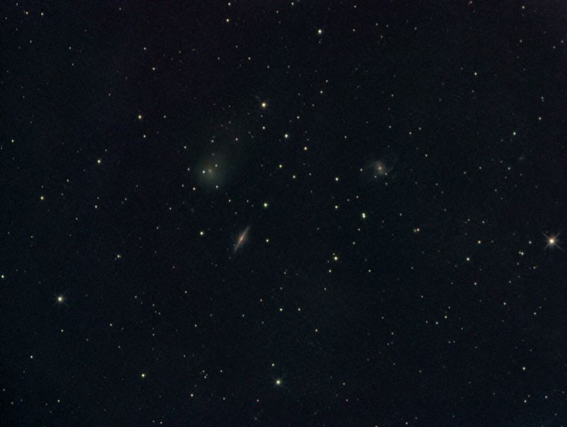Der Komet ist etwa 13 mag hell und hat einen Durchmesser von etwa 5' und einen kleinen Schweif. Auch visuell waren die drei unterschiedlichen Objekte gut zu sehen - trotz des aufgegangenen Mondes, der den Himmel schon beträchtlich erhellte.