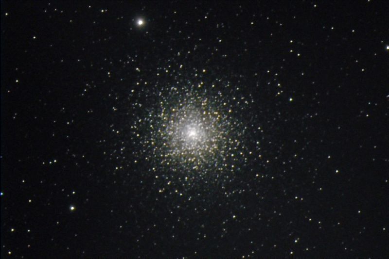 M72 steht einige Grad süd-westlicher im Sternbild Steinbock und ist gleich drei Größenklassen schwächer. Im 4-Zoll Teleskop war er gerade noch zu finden am Morgen des 4.8.2010, und das ohne Einzelsterne oder Details. Bei ihm zeigte sich die Überlegenheit der fotografischen Möglichkeiten gegenüber den rein visuellen. Augelöst sind die hellsten Sterne und auch die spektrale Spannweite von orange bis blau ist gut zu sehen.
