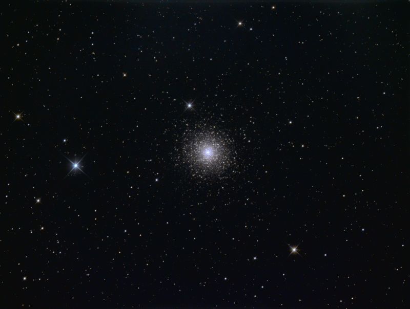 In M15 selbst ist noch der Planetarische Nebel Pease 1 verborgen. Er ist allerdings auf meinem Bild kaum von einem Stern zu unterscheiden und links oberhalb des Zentrums zu finden.