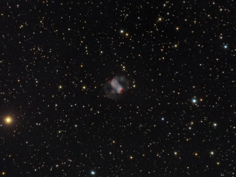 Die Strahlung, die der Sternrest noch abgibt ist sehr intensiv und regt die Gaswolken, die der sterbende Stern von sich weg in den Weltraum abgab, zum Leuchten an. Bei M76 kann man verschiedene Episoden von diesen sehr intensiven Sternwinden erkennen.