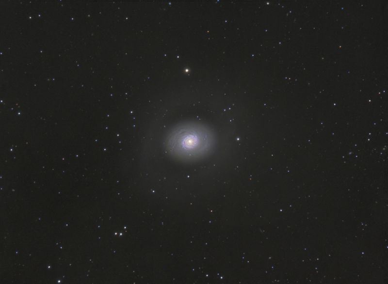 so könnte man den schwachen, großen Halo um diese Galaxie bezeichnen. Mit etwas Phantasie kann sie als Perlen- oder Muschelgalaxie bezeichnet werden, - eine Perle, die von mehreren und verschieden gefärbten Ringen umgeben ist. Die Welteninsel M94 steht im Sternbild der Jagdhunde und ist durch ihren hellen Kern leicht zu finden. Sie gehört mit 25 Millionen Lichtjahre zu unserer "näheren" Nachbarschaft. Unsere Milchstraße und M94 können auch zum großen Superhaufen des Virgo-Galaxienhaufen gezählt werden (siehe zentraler Bereich von diesem in der vorangehenden Nachricht).
