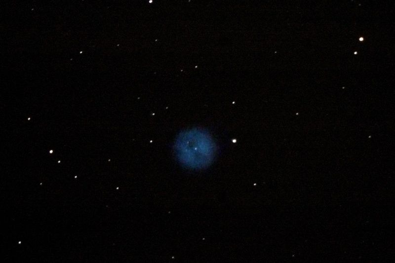befand sich auf den Aufnahmen vom 3.42009 oben in der Ecke. Er ist es wert in die Mitte gerückt zu werden. M97 ist ein sogenannter planetarischer Nebel. Physikalisch hat er zwar nichts mit Planeten zu tun, die Bezeichnung ist aus historischen Gründen geblieben. Es handelt sich um einen vergangenen Stern, der seine Gashülle in den Weltraum abgegeben hat.