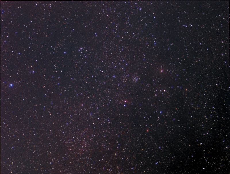 um verschiedene Sterne gingen mir am Morgen des 21.8.2010 im Sternbild Cepheus ins Netz. Eigentlich sollte es wegen durchziehender Wolken ein Versuchsbild werden, es gelang aber ein durchaus sehenswertes Übersichtsbild. Die Milchstraße ist voller schöner Objekte. Offene Sternhaufen in ihr sind oft von blauen Sternen besetzt, die ältere und damit rot-orange in sich tragen. Daneben stehen rote Wasserstoffwolken, die einen reizvollen Kontrast dazu ergeben. Der Hintergrund ist von Stern- und Dunkelwolken durchzogen. Alles zusammen ergeben eine Mischung interstellarer Schönheit.