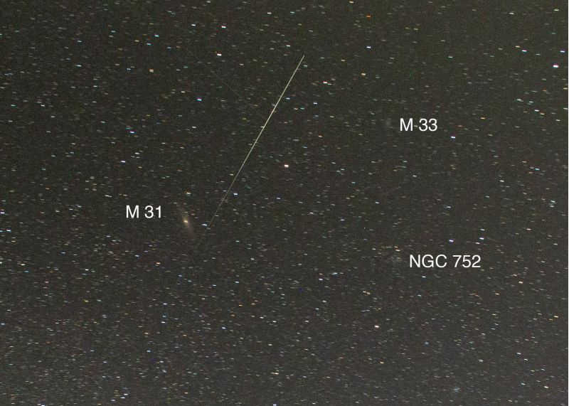 Einen Tag später war es auch dann im Süden Baden Würtembergs so weit: der Himmel war klar, die Nacht warm und die Milchstraße konnte im Zenit ihre ganze Pracht entfalten. Zunächst dominierten noch Ströme anderer Sternschnuppen: Kappa-Cygniden, Aquariden und hie und da eine Capricornide war zu sehen. Je länger die Nacht ging und vor allem gegen Morgen drängten sich Perseiden in den Vordergrund, vor allem im östlichen Bereich des Himmels. Eine zog hell durch den Widder und hinterließ eine nachglühende Spur, die für Minuten sichtbar war. andere huschten schnell und weniger auffällig über den Himmel. Schnell waren über zehn Sternschnuppen gezählt und das Zählen rückte in den Hintergrund. Auch die kommenden Nächte waren gefüllt mit vielen sichtbaren Sternschnuppen.