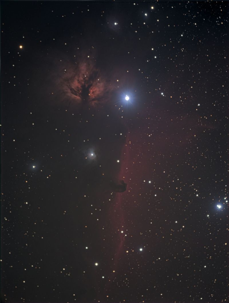 Besonders schön ist der Flammennebel und geradezu berühmt ist die Dunkelwolke vor der vertikalen, roten Wasserstoffwolke, die einem Pferdekopf sehr ähnlich sieht.