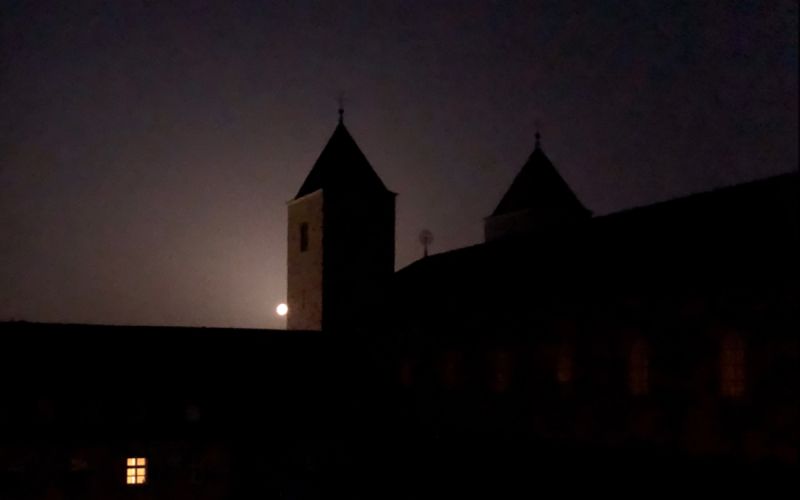 Dennoch hat der Staub in der Luft, der ja ursprünglich auch aus den Sternen kommt, seinen ganz eigenen Reiz: in der Nacht ist der Mond von einem großen, hellen Schein umgeben. Unser Nachbar selbst ist in seinem Licht abgeschwächt und kann daher im Teleskop leichter beobachtet werden, das er nicht gar so überhell im Auge erscheint.
