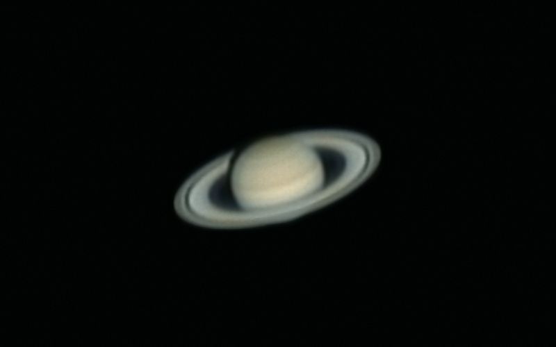 Nachdem zunächst Jupiter im Fokus des Interesses bestand, aber innerhalb einer Stunde kein wirklich scharfes Bild vom Königsplaneten aufgrund der unruhigen Atmosphäre zu erhalten war, wurde das Teleskop auf Saturn geschwenkt. Nach ersten bildlich gesprochenen "Hula-Hoop-Läufen" beruhigte sich der Herr der Ringe und stand förmlich auf dem Bildschirm. Schon in den Rohbildern konnte die Cassiniteilung gesehen werden und feine Zeichnungen auf der Planetenkugel wurden sichtbar.