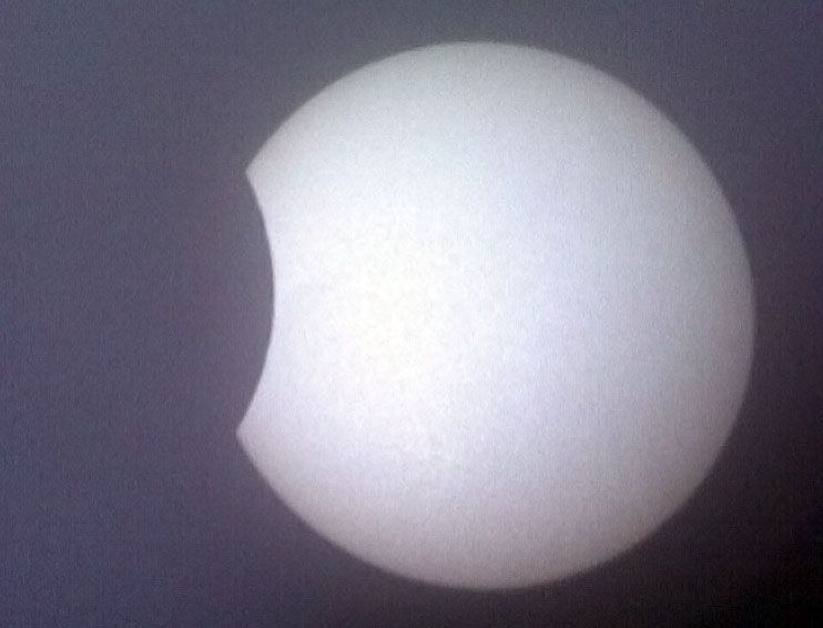 Sogar durch die Wolken, die die Sonne sehr gut abdämpften, konnte der Mondrand mit einer Sonnenbrille und dem freien Auge beobachtet werden.