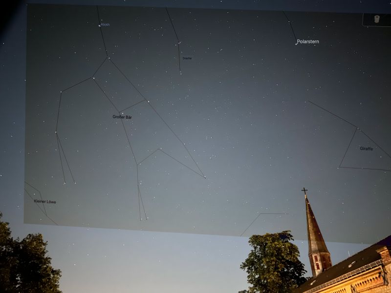 In einer Nacht, in der der Dreiviertel-Vollmond vom Himmel glänzte, wurde ein iPhone auf den hinteren Teil des Großen Bären ausgerichtet. Das Motiv war völlig willkürlich ausgewählt, weil gerade vom Fenster des zur Verfügung stehenden Zimmers dieser Ausschnitt des Himmels zu sehen war. Das Smartphone hatte den Vorteil von längeren Belichtungszeiten, die man bis zu 30 sec ausdehnen kann.