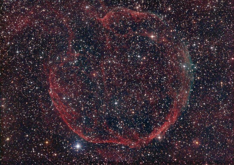 Im Sternbild Kassiopeia ist ein sehr schwacher Nebel zu beobachten, der von einer großen Sternexplosion (Supernova) stammt. Sie formte einen großen Ring am Himmel, der fast den doppelten Durchmesser des Mondes erreicht.