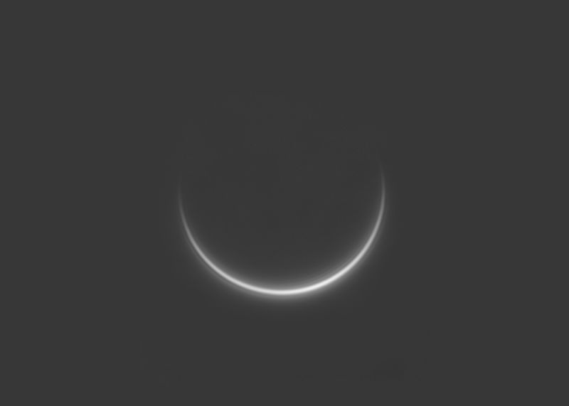 Selbst ein Smartphone reichte aus, um die Sichelgestalt zu fotografieren, wenn auch nur angedeutet. Mit einem kleinen Fernglas ist die Venus als schmale Sichel vor Sonnenaufgang und nach Sonnenuntergang noch einige, wenige Tage zu sehen.