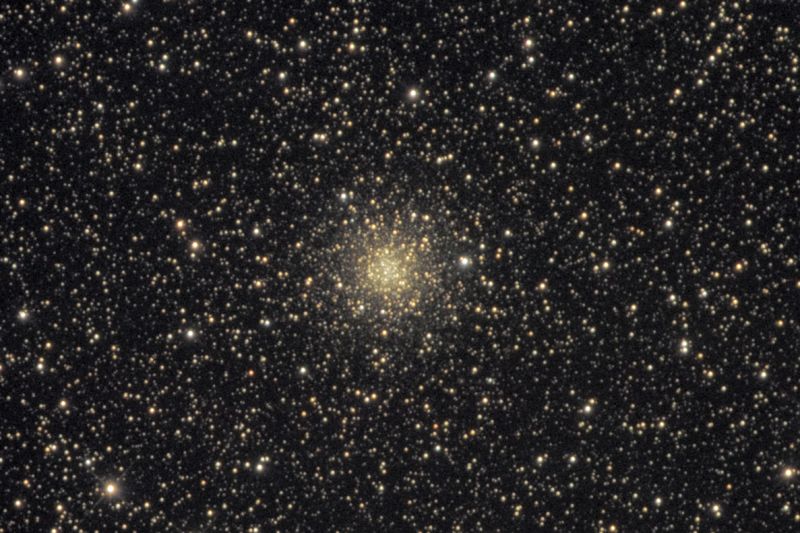 wollen noch Erwähnung finden. Bevor die Schönwetterphase Ende September / Anfang Oktober ausbrach konnte ich sie noch als "Versuchskaninchen" belichten. Dabei stehen sie allesamt sehr im Süden außer M56, der in der Nähe des Kopfes des Schwanes fast im Zenit steht. Deshalb ist er auch der deutlichste, am besten aufgelöste und größte Kugelsternhaufen der Serie. Das Gewimmel um ihn sind alles Sterne der Milchstraße.