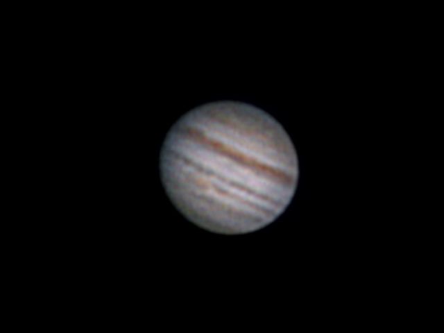 Saturn konnte ich nach den Laudes auch mit dem Teleskop und einer Brennweite von etwa 4.000 mm ein (wenn auch von der Luftunruhe verwackeltes) Bild gewinnen. Interessant ist, dass er nun auf der Nordhemisphäre ein ausgeprägtes Band entwickelt.