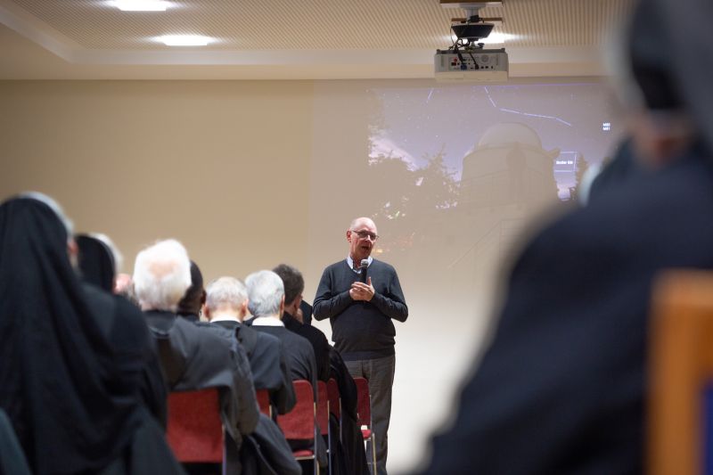 Julia Martin nahm dabei die Bilder auf und schrieb dazu: P. Christoph zeigte in seinem Impuls auf, was Gott und der Glaube für ihn mit Astronomie zu tun haben. Das schließe sich für ihn nämlich nicht aus, sondern das eine könne ohne das andere gar nicht funktionieren: „Beim Blick ins All merke ich, wie groß und wie großartig Gott unser Schöpfer eigentlich denkt.“ Besonders eindrücklich wurde das für die Ordensleute anhand der fantastischen Fotografien, die der Klosterastronom zeigte. Bereits seit den 70er-Jahren schaue er in die Sterne und die Faszination dafür bleibe.