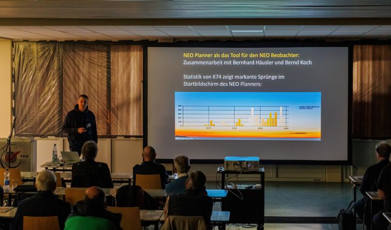 Zentrales Element war die Vorstellung von NEO, zur Vorplanung und dem Automatisierten Messen währen der ganzen Nacht am Teleskop. Das Programm bietet eine Fülle von Planungs- und Technikeingaben. Es wurde mit dem .NET Framework (Microsoft Plattform) entwickelt. Bernhard ist mit solchen Dingen auch professionell unterwegs. Mittlerweile verbreitet sich sein Programm NEO durch die Zusammenarbeit weltweit: Namibia, Frankreich, Brasilien, ...