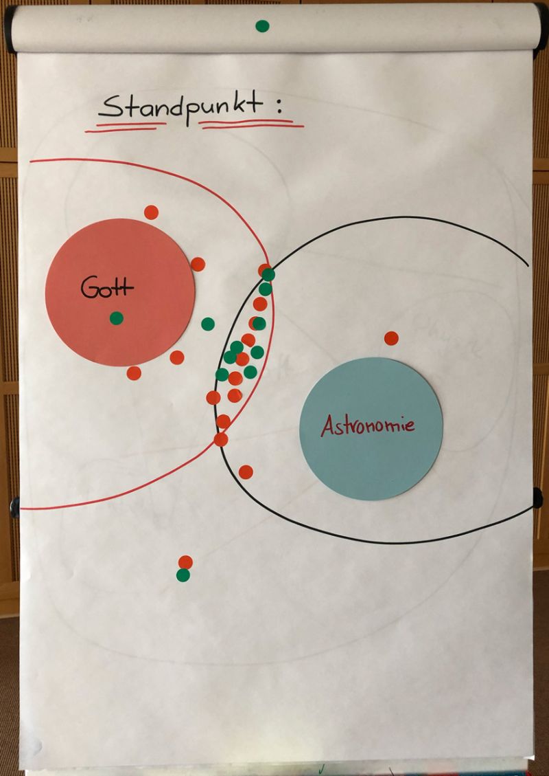 Spannend ist für uns immer die Gruppenzusammensetzung und das daraus resultierende Niveau, das wir anlegen müssen, damit sich alle mitgenommen fühlen. Neben einem studierten Astrophysiker und seiner Frau, die als Theologin arbeitet, waren auch ein pensionierter Chefchirurg mit seiner Gattin (ebenfalls Ärztin) sowie eine OLG-Richterin und weitere gut "vorbelastete" Mitstreiter "an Bord". Gerade was die Astronomie und Physik anbelangt konnten wir diesmal unseren Gästen nicht unheimlich viel Neues liefern. Umso stärker mussten wir das Gewicht unserer Veranstaltung Richtung Glaube und Gott verschieben. Wir gaben alles und konnten doch den Bogen zwischen beiden Schwerpunkten spannen.