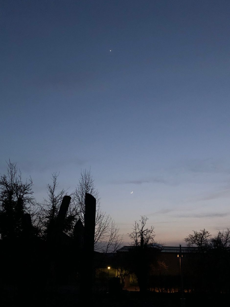 Strahlende Venus und Mondsichel am Abendhimmel