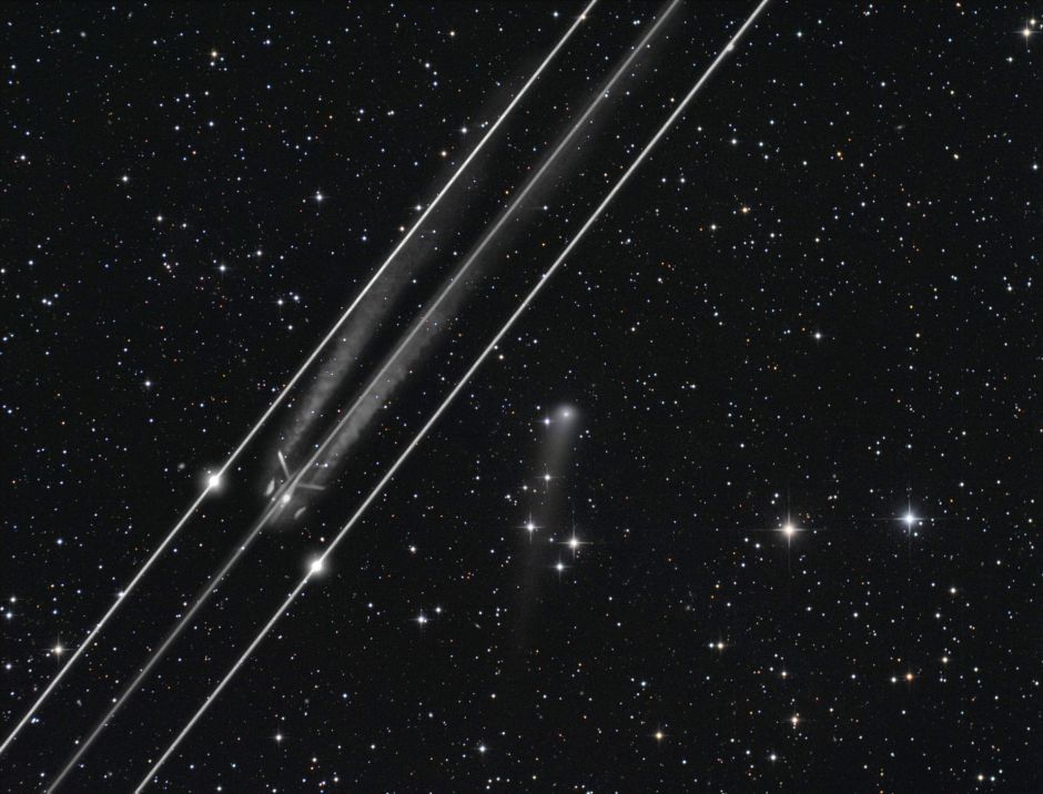 Flugzeugspur im Kometenbild